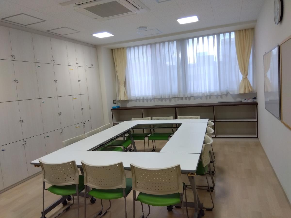 備品:机、椅子、固定式ホワイトボード・団体用ロッカー(要事前申し込み・貸出期間半年)