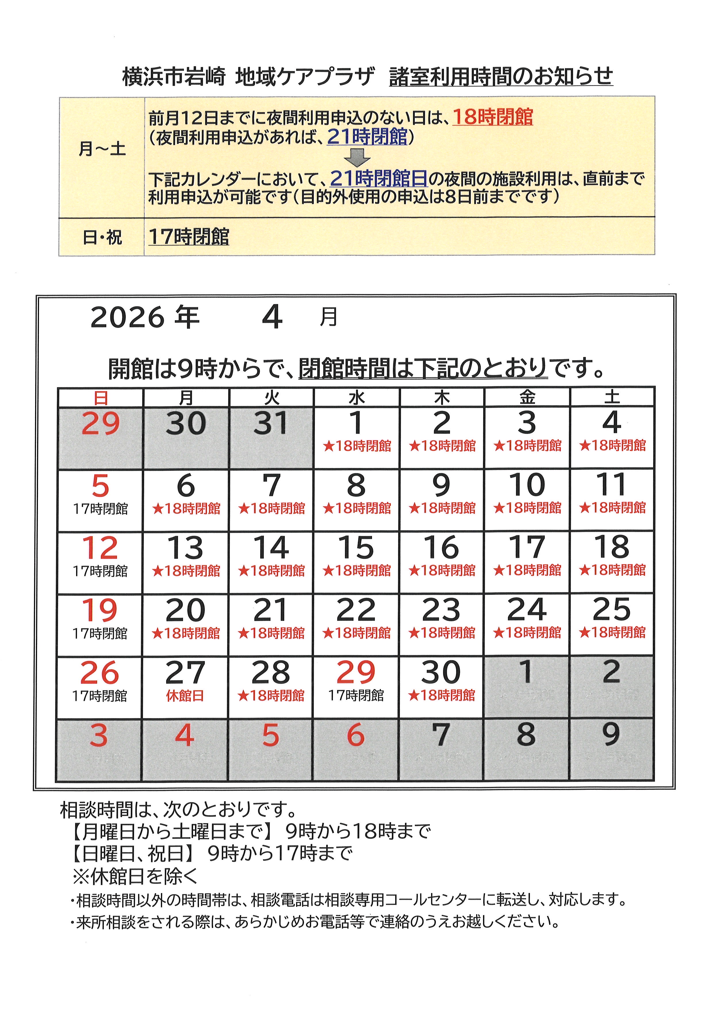 令和8年4月の閉館時間